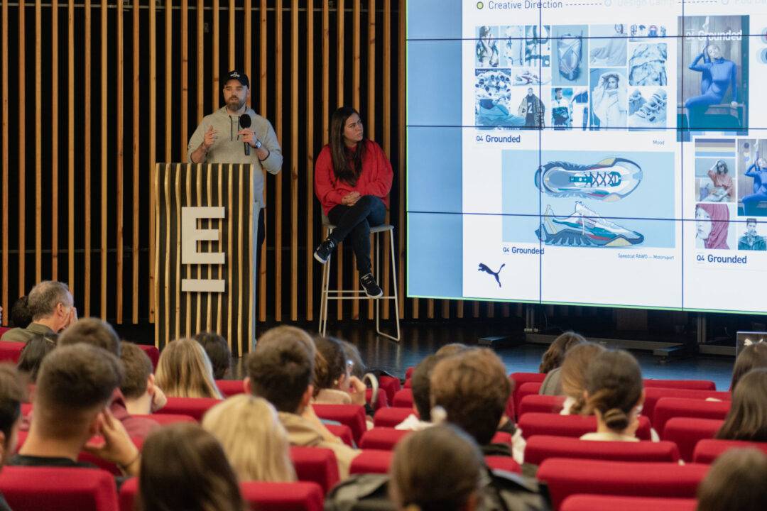 Para conocer cuál es el trabajo diario en esta empresa puntera, ESNE recibió, el pasado 22 de noviembre, a Juan Martínez y Elvira Gutiérrez, Senior Designer Footwear y Senior Manager People Connection and Attraction de Puma, respectivamente, en la jornada ‘Puma x ESNE: Strive to improve’.