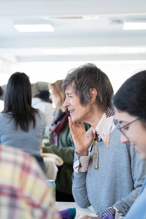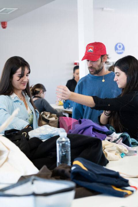 The workshop was led by Concha Romeu, an artist who works with fabrics, and Ardiya, DJ and stylist, owner of a hat company that also recycles garments. Romeu and Ardiya were teaching the students different creative techniques for treating fabrics, some of which were later put into practice when creating the new garments.