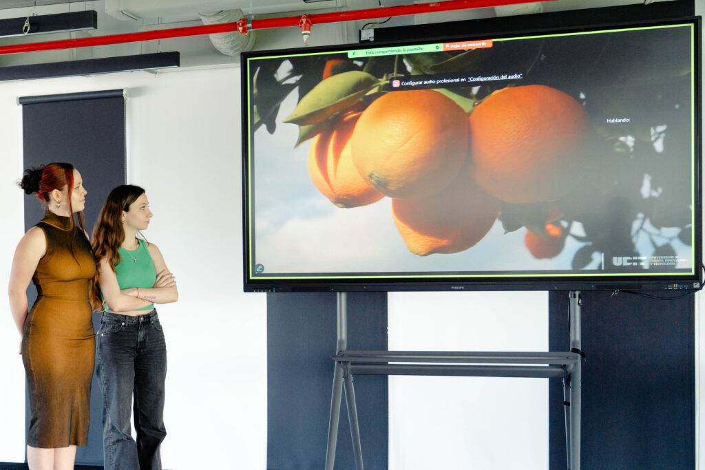 El equipo ganador de la semifinal celebrada el pasado 26 de mayo en el Innovation Hub del Campus de Tecnología, Innovación y Ciencias Aplicadas de la universidad, partió de una realidad tan cotidiana como ignorada: las naranjas amargas de Sevilla, que adornan miles de calles, representan hoy una problemática social y ambiental. Al no ser aptas para el consumo directo por su sabor amargo, gran parte de estos frutos acaban cayendo al suelo, generando problemas de salubridad y residuos. A pesar de ello, estos árboles forman parte del imaginario colectivo y del paisaje de la ciudad. Su proyecto propone en este sentido, transformar las naranjas en un polímero biodegradable destinado a la fabricación de abanicos tradicionales, devolviendo así este recurso desaprovechado a la ciudadanía como símbolo de sostenibilidad, diseño local y pertenencia cultural.
