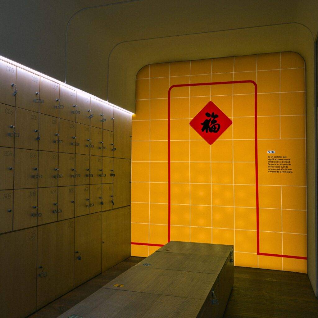 Bajo esta premisa, Santos y Xu diseñaron la gráfica de la exposición, evitando la exotización de la cultura y comunicando la idea de colectividad para formar comunidad. Destaca la utilización del hilo rojo, un símbolo importante en la historia y cultura china, que representa el destino y la conexión entre personas y se convierte en un elemento que atraviesa y une los diversos relatos, obras, instalaciones y objetos expuestos, invitando a la reflexión y al aprendizaje.