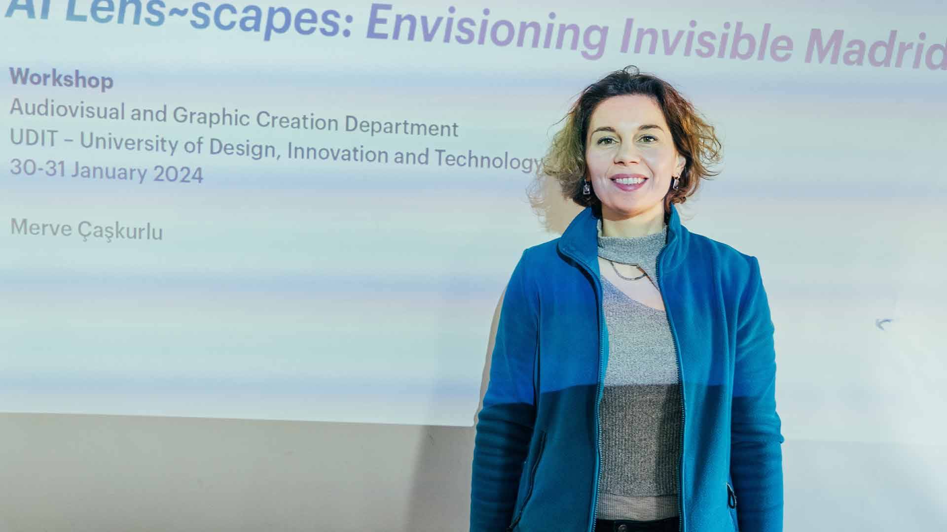 Los días 30 y 31 de enero la artista visual turca Merve Belgesay visitó el Campus de Diseño e Industrias Creativas de UDIT, Universidad de Diseño, Innovación y Tecnología, para impartir un taller de bocetaje con Inteligencia Artificial dirigido a los estudiantes del Área de Audiovisual y Creación Gráfica.